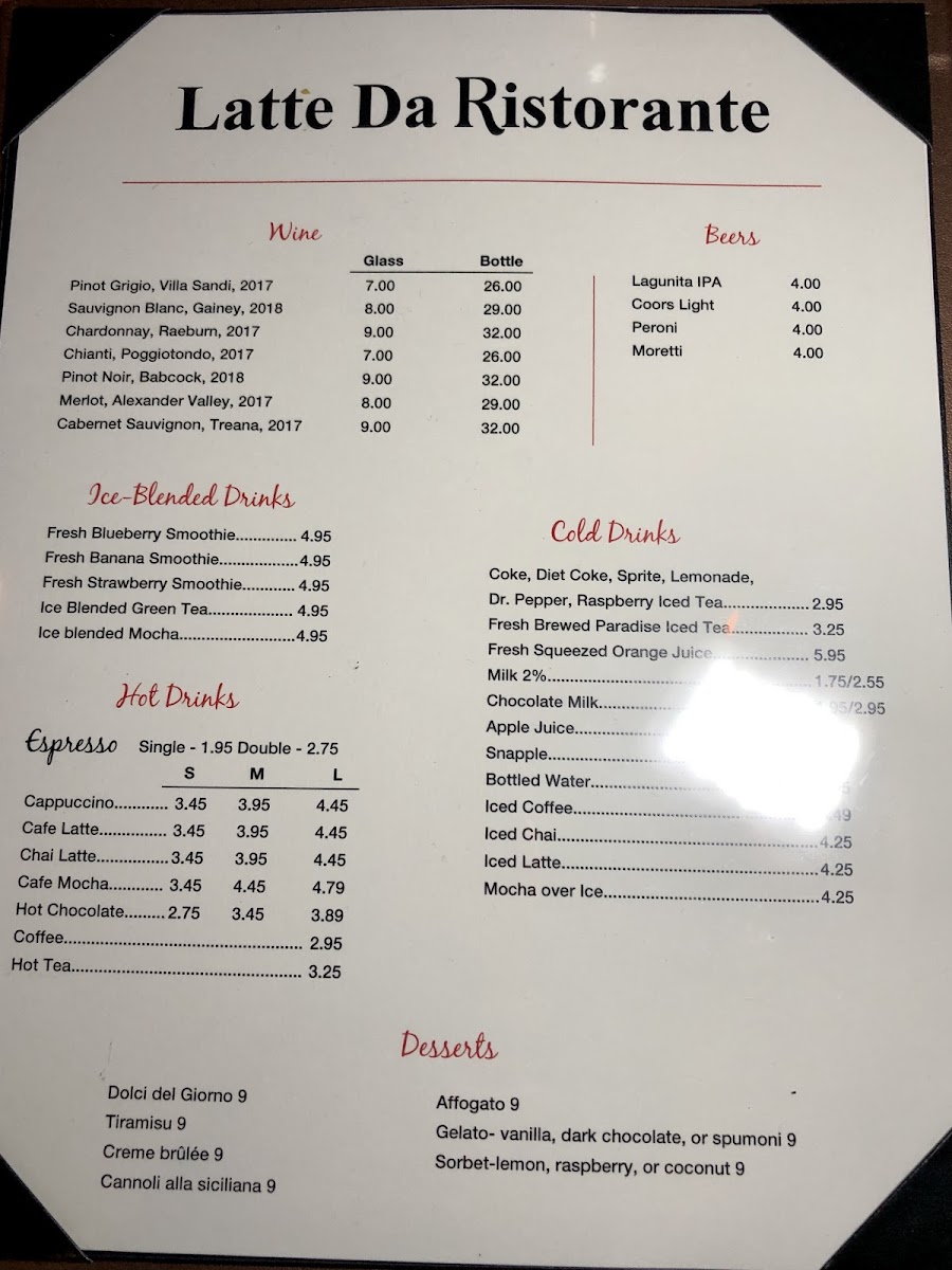 Latte Da Ristorante offers a menu that balances classic Italian comfort with a relaxed, inviting atmosphere. The selection feels approachable and well-suited for casual lunches, cozy dinners, or a leisurely weekend breakfast. Whether you’re settling in for a hearty plate of Pollo Alla Parmigiana or enjoying lighter fare like Caprese Salad and Bruschetta, the menu accommodates a range of appetites throughout the day.