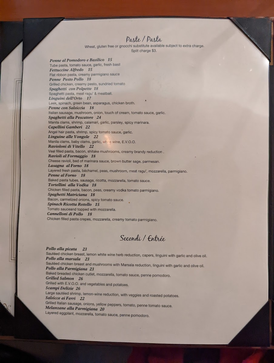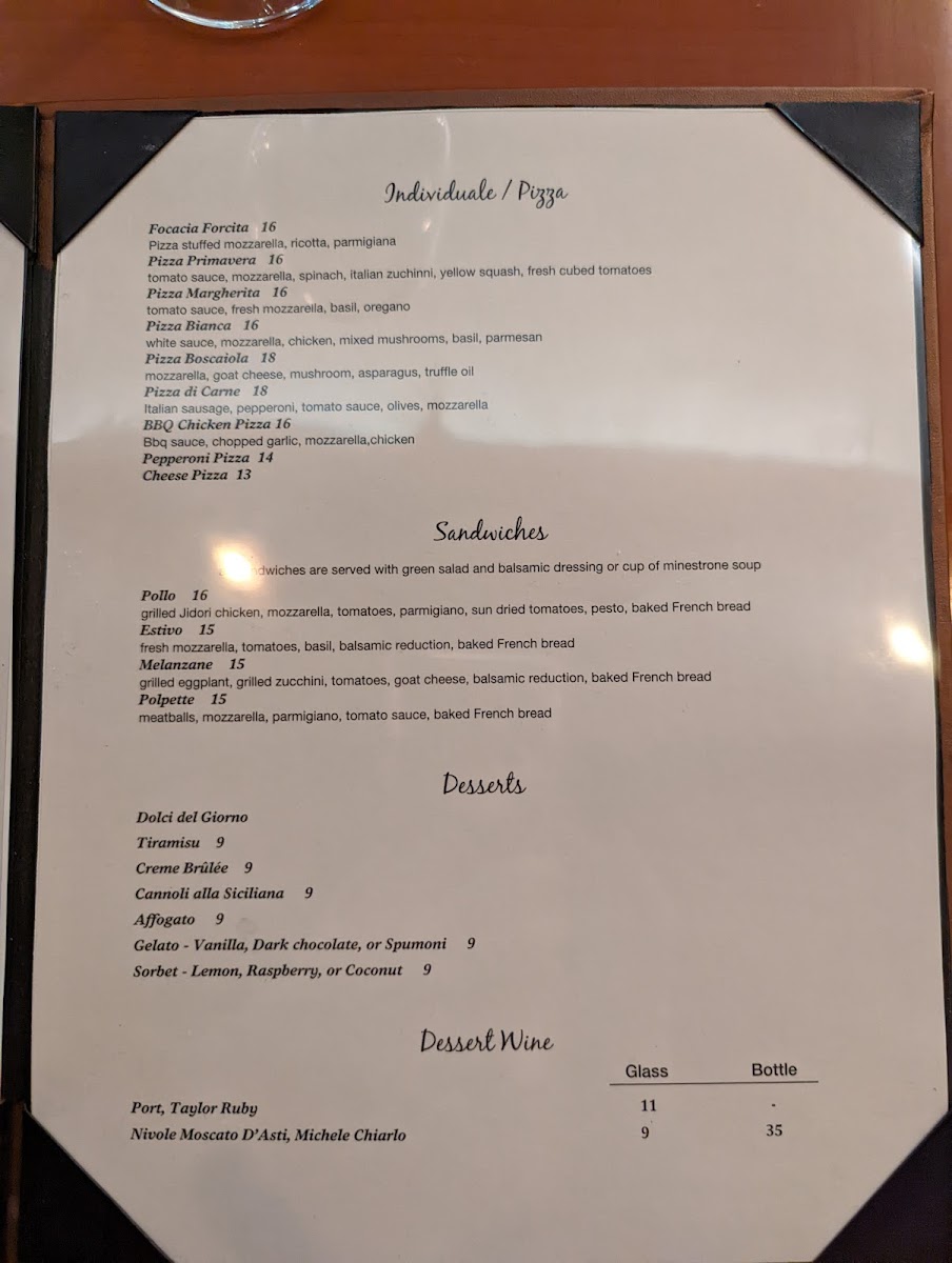 You’ll find familiar favorites such as Spaghetti, Ravioli, and Pizza Margherita alongside thoughtfully prepared specials like Chicken Marsala and Tortellini Alla Vodka. Simple touches like fresh basil, sundried tomatoes, and house-made sauces bring warmth and authenticity to each dish without feeling overly complex. The offerings extend to breakfast with options like a Veggie Omelette, and the dessert choices—think Tiramisu or Nutella Crepes with Strawberry—provide a satisfying finish to any meal.